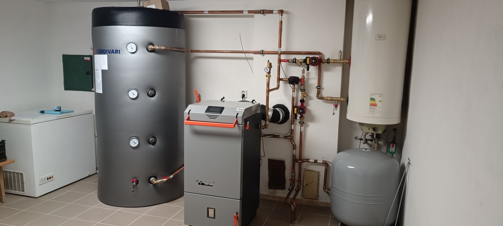 V rámci této instalace byl starý, nevyhovující kotel nahrazen moderním a efektivním kotlem BLAZE COMFORT 15. Původní zařízení již nesplňovalo požadavky na spolehlivý a úsporný provoz, proto byla zvolena tato modernizace.