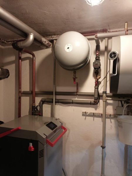 Dům s vytápěnou plochou 260 m² ve sklepním a dvou nadzemních podlažích a tepelnou ztrátou 25 kW byl vybaven systémem zahrnujícím 200litrovou akumulační nádrž s čerpadlovým okruhem řízeným kotlovou jednotkou. Pro zajištění správného provozu byl také vyvložkován komín.