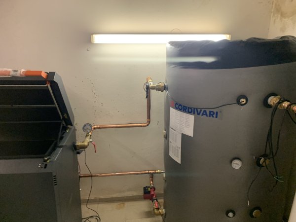 BLAZE GREEN 18. Instalace zahrnovala montáž nového komína a akumulační nádrže o objemu 1000 litrů. Vzhledem k celkové vytápěné ploše 120 m² a tepelné ztrátě objektu 12 kW byly vytvořeny dva samostatné topné okruhy, přizpůsobené jednotlivým bytovým jednotkám. Kotel byl vybaven moderní regulací a příslušenstvím ecoNET, eSTER x80 a ecoSTER 90. Zákazníkovi byla zároveň poskytnuta pomoc se zprostředkováním dotací.