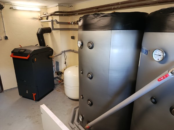 V rodinném domě v Kaplici probíhala výměna starého kotle za nový BLAZE GREEN 18, který je navržen pro spalování kusového dřeva. Systém byl navržen tak, aby splňoval vysoké nároky na akumulaci tepla, a proto byly do instalace zahrnuty dvě akumulační nádrže o objemu 2 × 800 litrů. Tato kombinace zajišťuje dlouhodobý komfort a stabilitu vytápění po celý den.