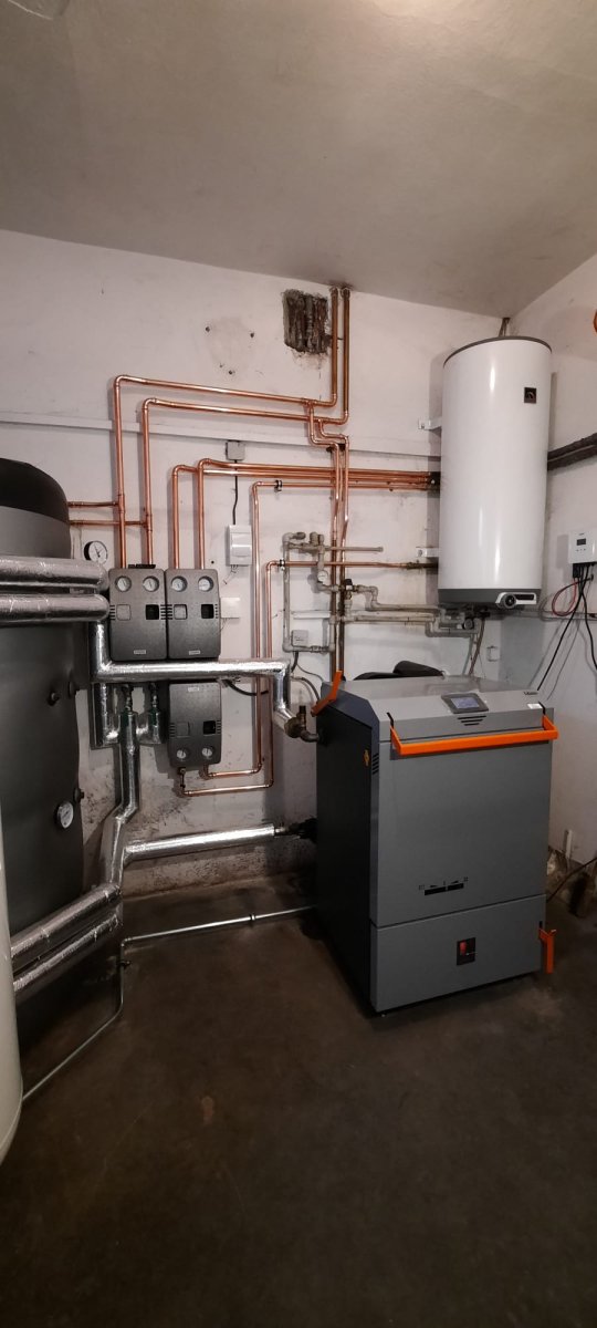 Ve Zhoři u Mladé Vožice, okres Tábor v Jihočeském kraji, byla zrealizována výměna starého kotle Dakon na uhlí za moderní zplynovací kotel BLAZE PRAKTIK 40-860T LAMBDA. Součástí instalace byla také akumulační sestava o celkovém objemu 3 000 litrů, tvořená třemi akumulačními nádržemi po 1 000 litrech, a bojler Dražice pro ohřev teplé vody. Tímto řešením bylo dosaženo efektivního a ekologického vytápění celého penzionu, zajištění komfortního ohřevu teplé vody, výrazného snížení spotřeby paliva a splnění přísných emisních norem.