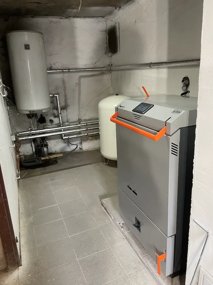 Při venkovních teplotách 5–10 °C stačí zatápět obden, což výrazně snižuje potřebu obsluhy kotle. Při jmenovitém výkonu 25 kW se nádrže natopí za 12 hodin, což zajišťuje plynulé a efektivní vytápění. Vytápěná plocha 160 m² (2 NP) je nyní energeticky úspornější, přičemž byl zachován původní komín s vyvložkováním.