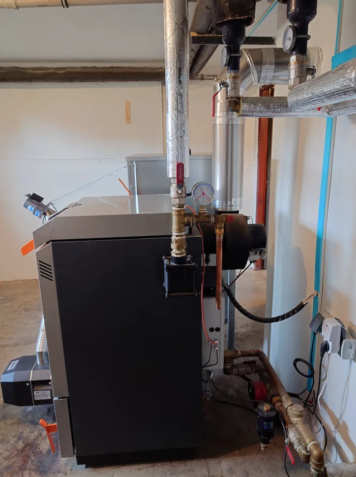 Součástí montáže bylo kompletní zapojení kotle do otopného systému, včetně jeho přizpůsobení konkrétním požadavkům objektu. Díky pečlivému provedení instalace a správnému nastavení systému bylo dosaženo úsporného provozu, plynulého chodu a minimálních nároků na obsluhu.