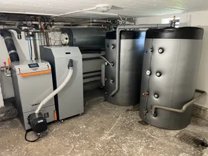 Výměna proběhla s využitím dotačního programu, včetně kompletního vyřízení administrativy. Původní kotel neznámého výrobce o výkonu cca 20 kW byl nahrazen moderním kotlem BLAZE COMFORT COMBI 20 860T Lambda. Součástí systému jsou dvě akumulační nádrže o objemu 800 litrů, zapojené do série, což pomáhá optimalizovat hospodaření s teplem. K systému byl rovněž připojen stávající bojler TUV o objemu 200 litrů pro ohřev teplé vody.