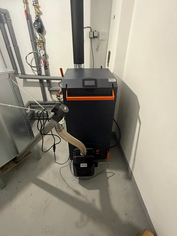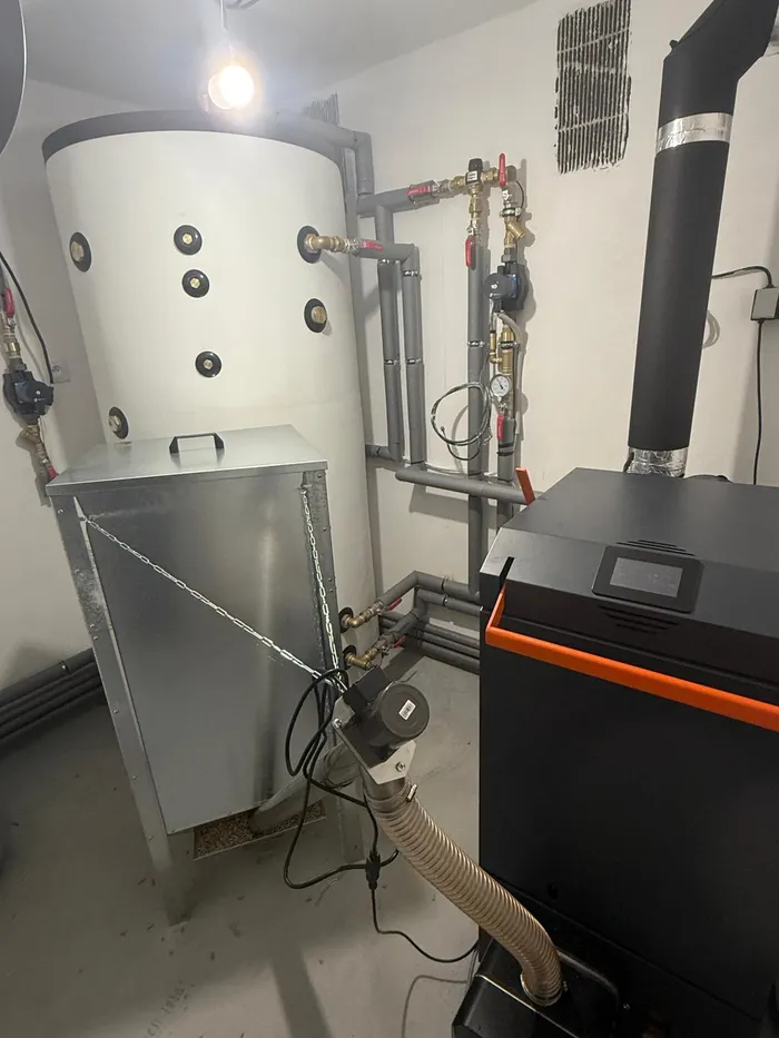 U zákazníka obci Zahnašovice proběhla demontáž a ekologická likvidace původního topného systému i starých rozvodů. Srdcem nové kotelny se stal kombinovaný dřevozplyňovací kotel BLAZE GREEN COMBI 20-860T s rotačním hořákem a moderní dotykovou regulací, který doplňuje objemná izolovaná akumulační nádoba a vodorovný kombinovaný ohřívač vody. Celý systém byl doplněn o potřebné armatury, oběhová čerpadla a expanzní nádoby o objemech 140 l a 24 l pro bezpečný a efektivní provoz.