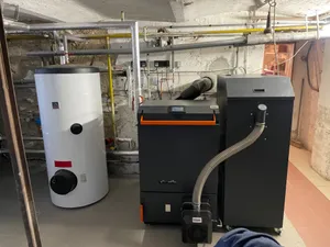 Byla realizována instalace kombinovaného kotle BLAZE GREEN COMBI 26, který slouží jako zdroj vytápění pro tři samostatně řízené bytové jednotky. Součástí systému je akumulace o celkovém objemu 1500 litrů (2× 750 l).