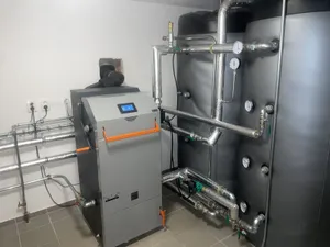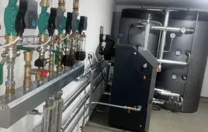 Součástí instalace byly také dvě akumulační nádrže s celkovým objemem 1820 l a nádrž na ohřev vody o objemu 300 l. Dům je vybaven dvěma okruhy podlahového topení a jedním okruhem radiátorů. Tepelná ztráta objektu dosahuje 9 kW. Z akumulačních nádrží, které kotel nahřeje za jeden den, může dům v závislosti na počasí vydržet až 5 dní bez nutnosti přitápění.