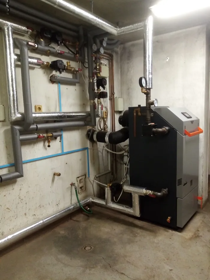 Technické řešení zahrnovalo instalaci akumulační nádrže o objemu 1000 l, zásobníku teplé užitkové vody o objemu 200 l a napojení na tři topné okruhy – radiátorový systém, podlahové vytápění a přípravu TUV. Celá kotelna byla nově navržena s důrazem na správné jištění a funkčnost jednotlivých prvků systému. Realizace proběhla v délce 9 dní.