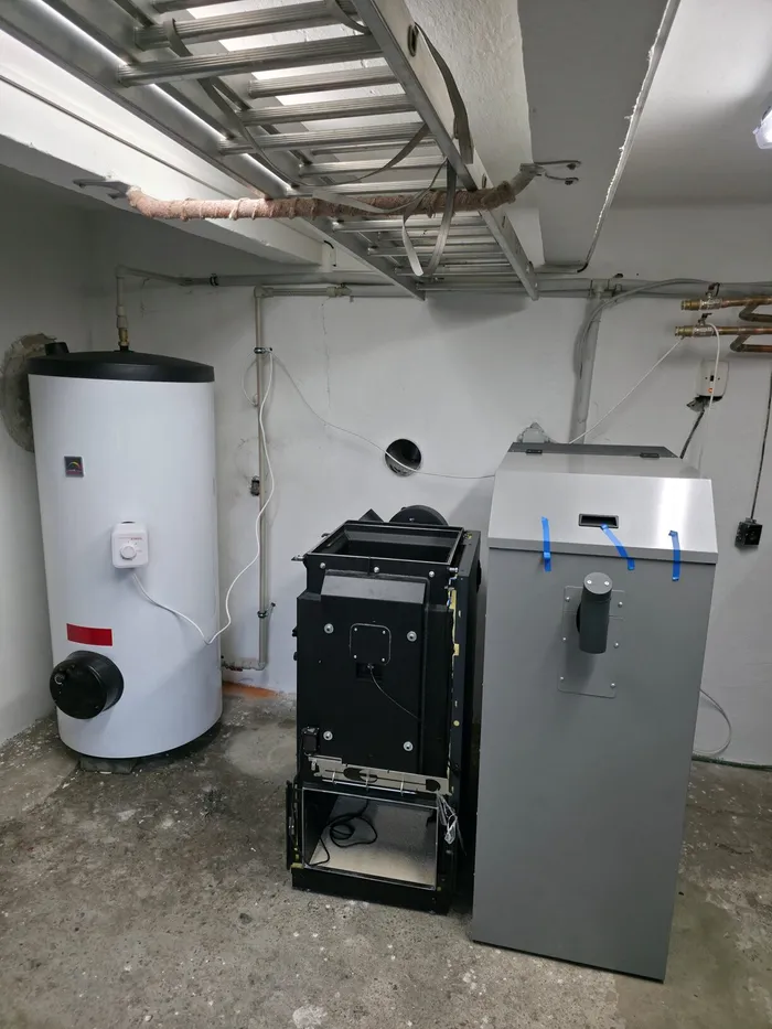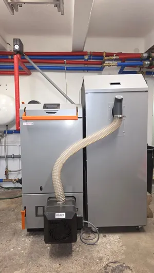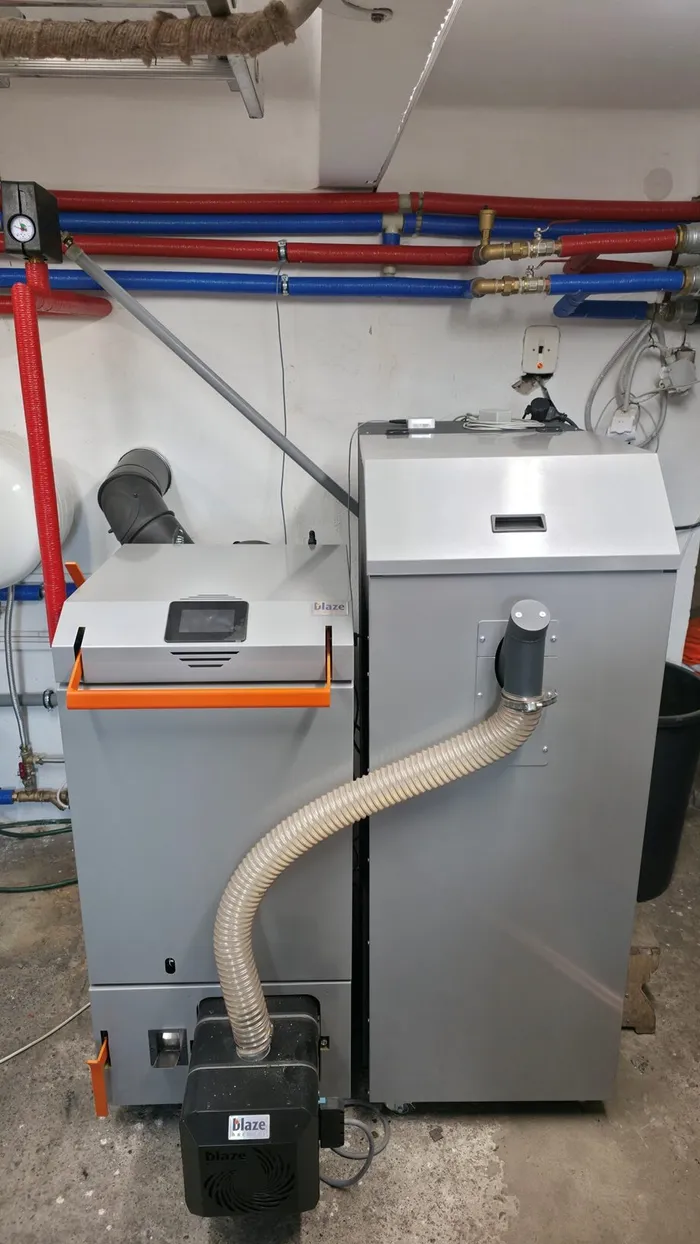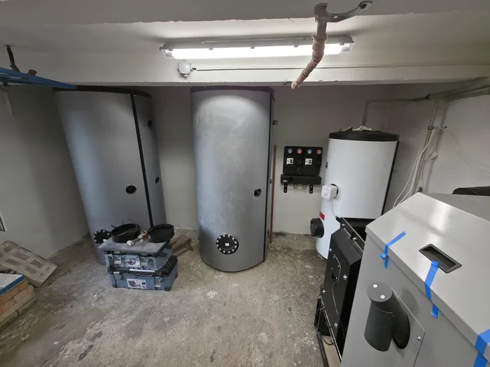 Nově byla kotelna vybavena kombinovaným dřevozplynovacím kotlem BLAZE PRAKTIK COMBI 25, doplněným o designový zásobník BLAZE HARMONY s integrovaným podavačem pelet o objemu 370 litrů, internetový modul ecoNET 300 pro vzdálený přístup a bezdrátové dálkové ovládání s funkcí pokojového termostatu eSTER_X40. Součástí řešení jsou také dvě akumulační nádrže o objemu 750 litrů, nepřímotopný ohřívač TUV o objemu 300 litrů, kompletní paket hydraulického příslušenství s čerpadlovými skupinami a směšováním, expanzní nádoby a elektrická topná tělesa.