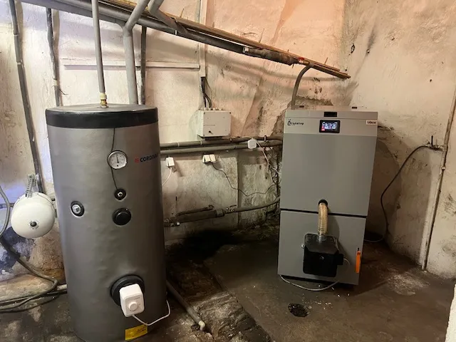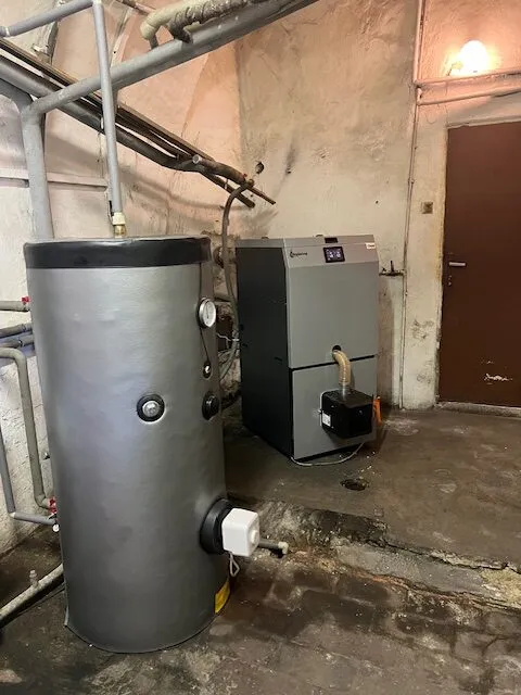 Součástí instalace je kombinovaný zásobník teplé užitkové vody o objemu 300 litrů a vyvložkování komína, které je nezbytné pro bezpečný a správný provoz nového kotle. Systém slouží k vytápění přibližně 200 let starého domu se čtyřmi bytovými jednotkami, kde nový zdroj výrazně zlepšil ekologickou bilanci provozu, snížil emise a zvýšil celkový komfort vytápění.