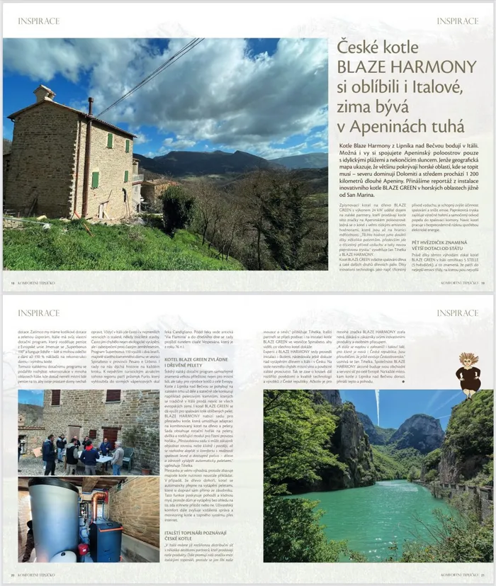 V posledním čísle magazínu Komfortní teplíčko, který se věnuje komfortnímu vytápění peletami, briketami a dalšími dřevěnými palivy, vyšel článek o čerstvé referenci a instalaci našeho ekologického kotle na dřevo BLAZE GREEN v Itálii. Přinášíme Vám přepis tohoto článku se zajímavými informacemi, které Vám přiblíží, jak si s vytápěním dřevní biomasou poradili v této jihoevropské zemi.