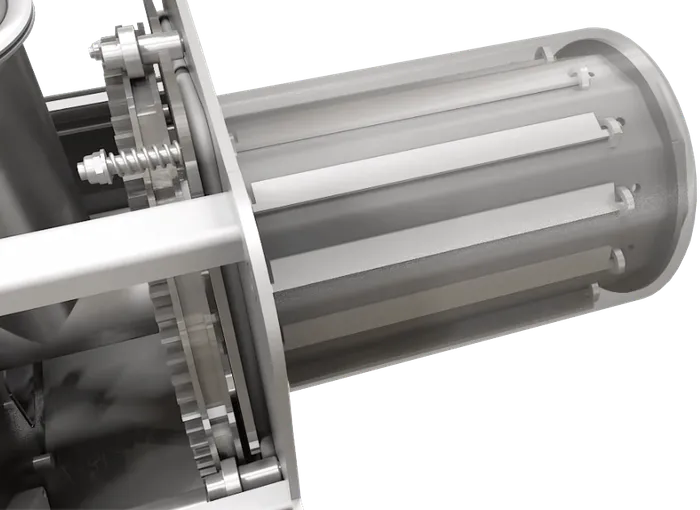 Ulepszona konstrukcja komory obrotowej jest osadzona na czterech solidnych łożyskach, które są skutecznie chronione przed wysokimi temperaturami. Dzięki temu zapewniona jest płynna praca bez zbędnego zużycia, długa żywotność i maksymalna niezawodność nawet przy codziennej eksploatacji.