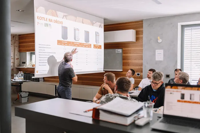 Automatická řídicí jednotka umožňuje provozovat kotel na nižších výkonech (důležité zejména v přechodném období) a instalovat menší akumulační nádrž, což vede k výrazné úspoře financí i prostoru.